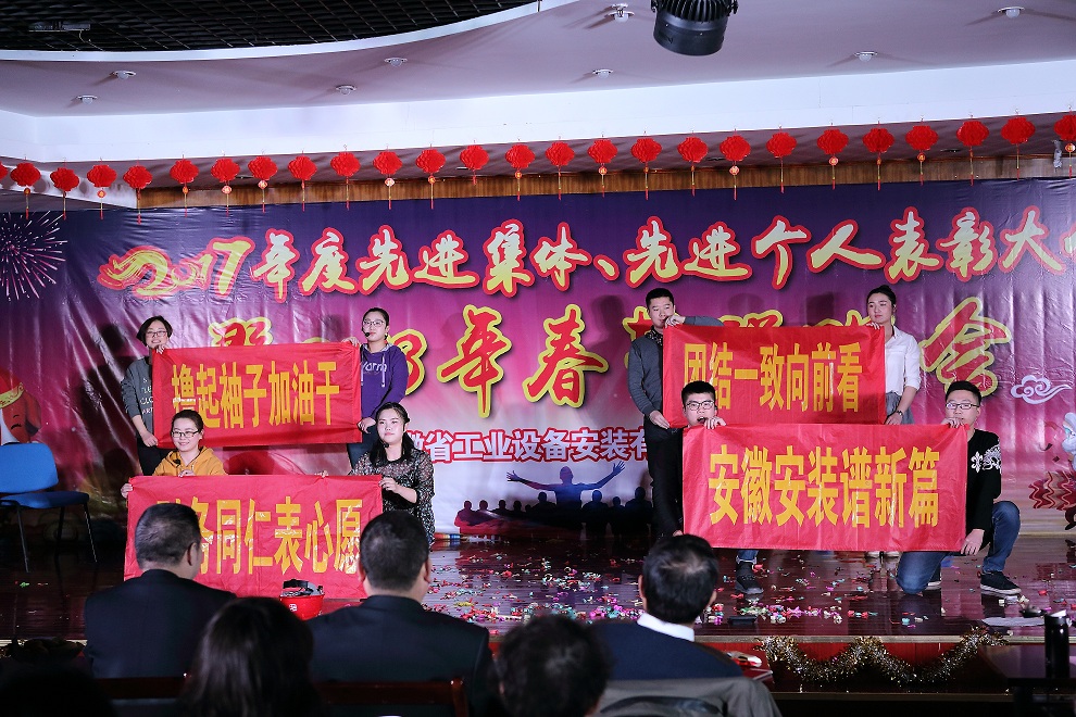 彩鳳辭舊歲,金犬迎新春。2月8日下午,安徽安裝公司2018年迎新春聯(lián)歡會(huì )如期舉行。公司領(lǐng)導及全體員工200余人歡聚一堂,共迎新春佳節,共享節日喜悅!