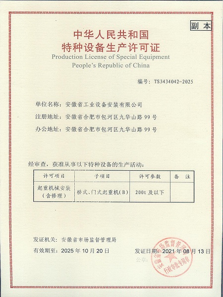 特種設備安裝改造維修許可證(起重機械)