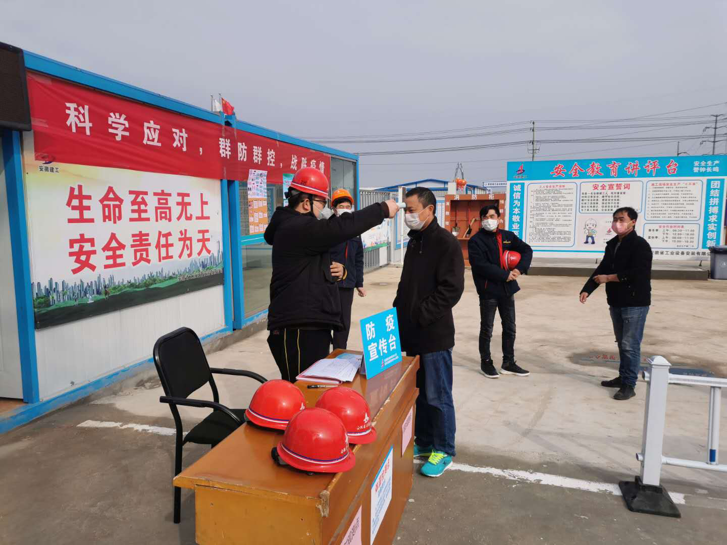 “在做好疫情防控的同時(shí),項目已于2月25日開(kāi)始復工建設,管理人員10人全部到場(chǎng)。3月3日現場(chǎng)勞務(wù)人員已到超過(guò)70%,在疫情防控的特殊時(shí)期為確保項目順利復工,提前做好了防疫工作的相關(guān)準備,對所有項目建設的人員實(shí)行嚴格排查,建立人員信息檔案,對其進(jìn)行一對一防疫和安全施工業(yè)務(wù)培訓。在項目上,員工采用了分餐制,每天有專(zhuān)人對生活垃圾進(jìn)行統一清運、處理,對辦公區、居住區、公共場(chǎng)所等進(jìn)行消毒殺菌。目前無(wú)人員發(fā)熱情況,無(wú)確診或疑似病例。