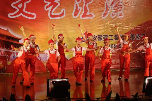 在文藝匯演中,集團機關(guān)及下屬單位參演節目17個(gè),或舞蹈,或小品,或服裝秀,亮麗紛呈,掌聲不斷。我公司員工自編自演的參演作品——音樂(lè )快板《建工禮贊》第八個(gè)出場(chǎng),質(zhì)樸、熱烈、喜慶,獲得9.84的全場(chǎng)最高分,繼上屆藝術(shù)節琴書(shū)說(shuō)唱《大漠邊陲譜新篇》榮獲一等獎后,再獲集團公司文藝匯演一等獎,今天晚上將代表建工集團參加省屬企業(yè)國慶文藝晚會(huì )。