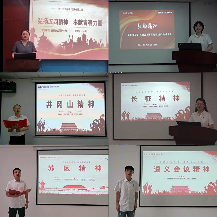 指尖微黨課課堂。為慶祝建黨100周年,促進(jìn)黨史學(xué)習教育方式多樣化,讓廣大基層一線(xiàn)黨員尤其是青年黨員同志廣泛參與到黨史宣講中來(lái),公司黨委依托公司官方微信公眾號重新打造安徽安裝的黨課品牌——“指尖微黨課”課堂,組織開(kāi)展了“講好紅色精神 凝聚奮進(jìn)力量”指尖微黨課活動(dòng)。所屬各黨支部積極推薦黨員同志,尤其是基層一線(xiàn)的黨員同志參與到公司黨委“指尖微黨課宣講員”隊伍中來(lái),此次指尖微黨課課堂每集時(shí)長(cháng)5-8分鐘,短小簡(jiǎn)潔且內涵豐富,以五四精神、紅船精神、井岡山精神、延安精神、航天精神、偉大抗疫精神等人民熔鑄鍛造的偉大紅色精神為主題,講述這些紅色精神背后的感人故事,圍繞每一期紅色精神主題,主講人結合自身工作實(shí)際,談感想談體會(huì )。指尖微黨課旨在變“被動(dòng)學(xué)”為“主動(dòng)講”,變“集中念開(kāi)會(huì )讀”為“隨時(shí)看隨地學(xué)”,解決了公司項目點(diǎn)多面廣,黨員分散不易集中系統學(xué)習的問(wèn)題,現在只要打開(kāi)手機,利用零碎時(shí)間就可以通過(guò)身邊人的宣講更直觀(guān)更生動(dòng)地領(lǐng)略黨史中的奮進(jìn)力量,切實(shí)做到“人人都是宣講員、黨課揣進(jìn)口袋中”。