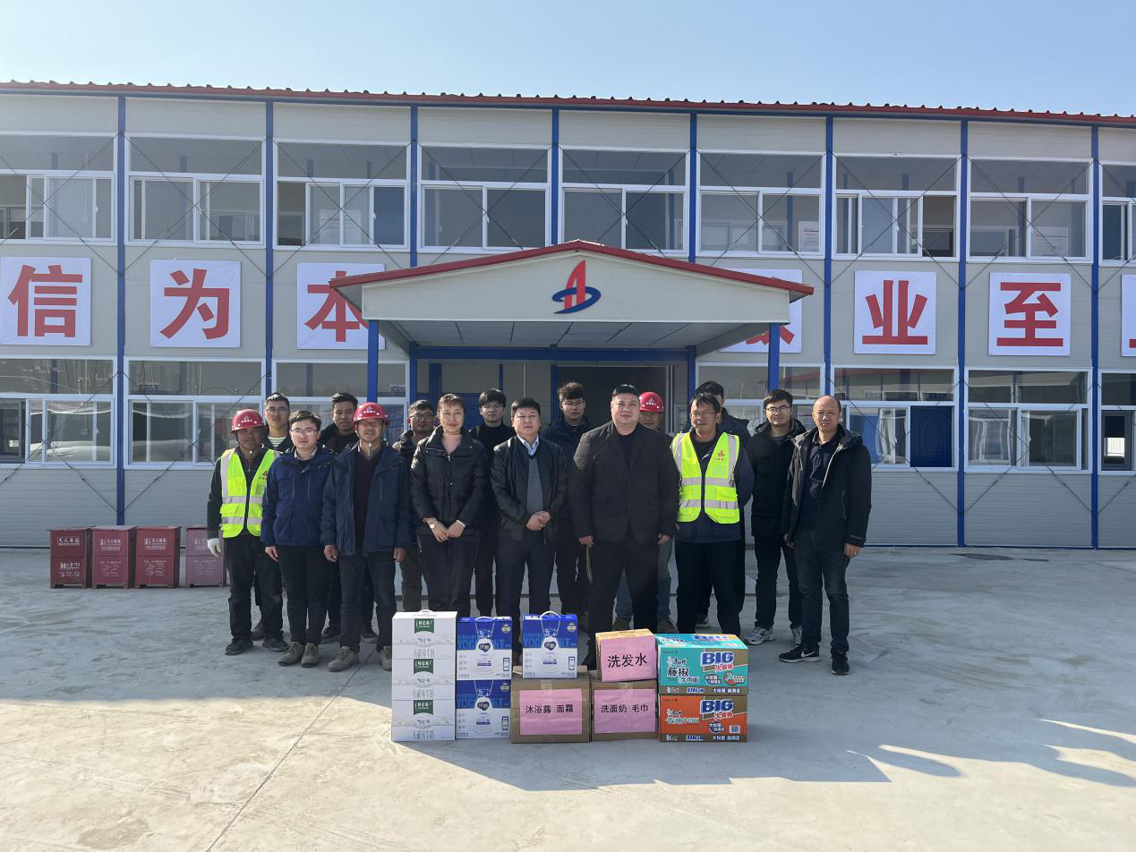 寒冬送溫暖,關(guān)愛(ài)暖人心。分公司經(jīng)理許杰、黨支部書(shū)記王偉親手將慰問(wèn)品送到了每一位堅守奮斗在一線(xiàn)的項目職工的手中,并與項目職工展開(kāi)親切交流,詳細了解施工人員的生活情況,并對冬季取暖安全提出了要求。叮囑大家冬天室外作業(yè)天氣冷、施工跨度大、危險源多,一定要遵守施工安全管理規范,注重人身安全和身體健康,在保證施工生產(chǎn)進(jìn)度的同時(shí),能夠度過(guò)一個(gè)安全、健康、溫暖的冬季;通過(guò)與一線(xiàn)員工談心談話(huà),進(jìn)一步了解職工的生活冷暖、家庭情況,并幫助職工解答公司近期工作法規特別是現階段新冠疫情常態(tài)化管理情況下的返鄉政策,把溫暖不僅送到了職工的手中,還送到了職工的心里。