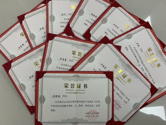 4月27至28日,合肥分公司在線(xiàn)上組織進(jìn)行了慶祝中國共產(chǎn)黨成立100周年黨史知識競賽活動(dòng)。黨史知識競賽吸引了132人報名參與,根據答題情況共有10名同志獲獎。黨史知識競賽活動(dòng)旨在以賽促學(xué),以學(xué)促用,推動(dòng)黨史學(xué)習教育往深里走、往實(shí)里走,在扎實(shí)理論學(xué)習的同時(shí)也讓黨史學(xué)習教育入腦入心。