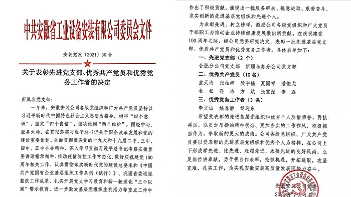 今年以來(lái),趙永峰同志以黨史學(xué)習教育和慶祝中國共產(chǎn)黨成立100周年為契機,以集團黨建“領(lǐng)航計劃”為抓手,創(chuàng )新型開(kāi)展支部黨建工作,多措并舉,勠力同心,真抓實(shí)干,積極探索項目黨建工作新載體、新途徑,以深入開(kāi)展創(chuàng )先爭優(yōu)“黨員示范崗”等主題實(shí)踐活動(dòng)為載體,以“我為群眾辦實(shí)事”實(shí)踐活動(dòng)帶領(lǐng)支部班子成員創(chuàng )造性地開(kāi)展一系列黨建工作,用實(shí)際行動(dòng)踐行初心使命,用真抓實(shí)干檢驗黨史學(xué)習教育成效。積極發(fā)揮了“一名黨員就是一面旗幟,一個(gè)支部就是一座堡壘”的重要作用。他所在合肥分公司被建工集團授予“先進(jìn)集體”光榮稱(chēng)號,合肥分公司黨支部被安徽省工業(yè)設備安裝有限公司黨委評為“先進(jìn)黨支部”。趙永峰同志榮獲安徽建工集團“勞動(dòng)模范”等多項榮譽(yù)稱(chēng)號。
