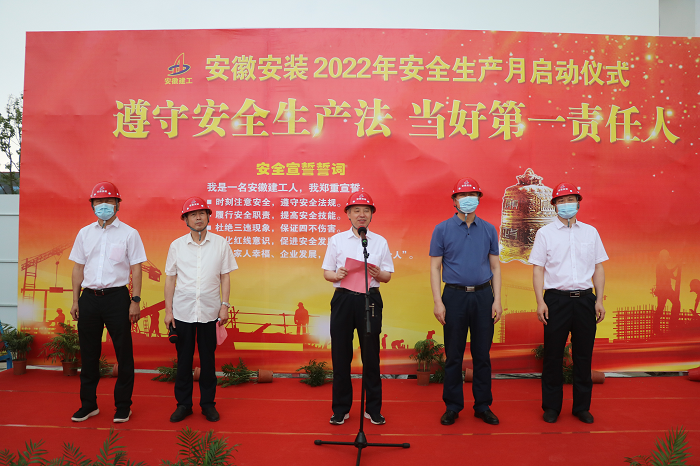 在全國第21個(gè)“安全生產(chǎn)月”活動(dòng)到來(lái)之際,5月30日上午,安徽安裝公司2022年“安全生產(chǎn)月”啟動(dòng)儀式在年配套1000萬(wàn)臺新能源汽車(chē)及年產(chǎn)2億臺制冷空調壓縮機關(guān)鍵性能件制造基地項目舉行。公司黨委書(shū)記、董事長(cháng)胡六中,紀委書(shū)記、工會(huì )主席李楊,副總經(jīng)理趙伯平,總工程師吳繼成及機關(guān)各部門(mén)、各分公司代表參加了本次活動(dòng)。