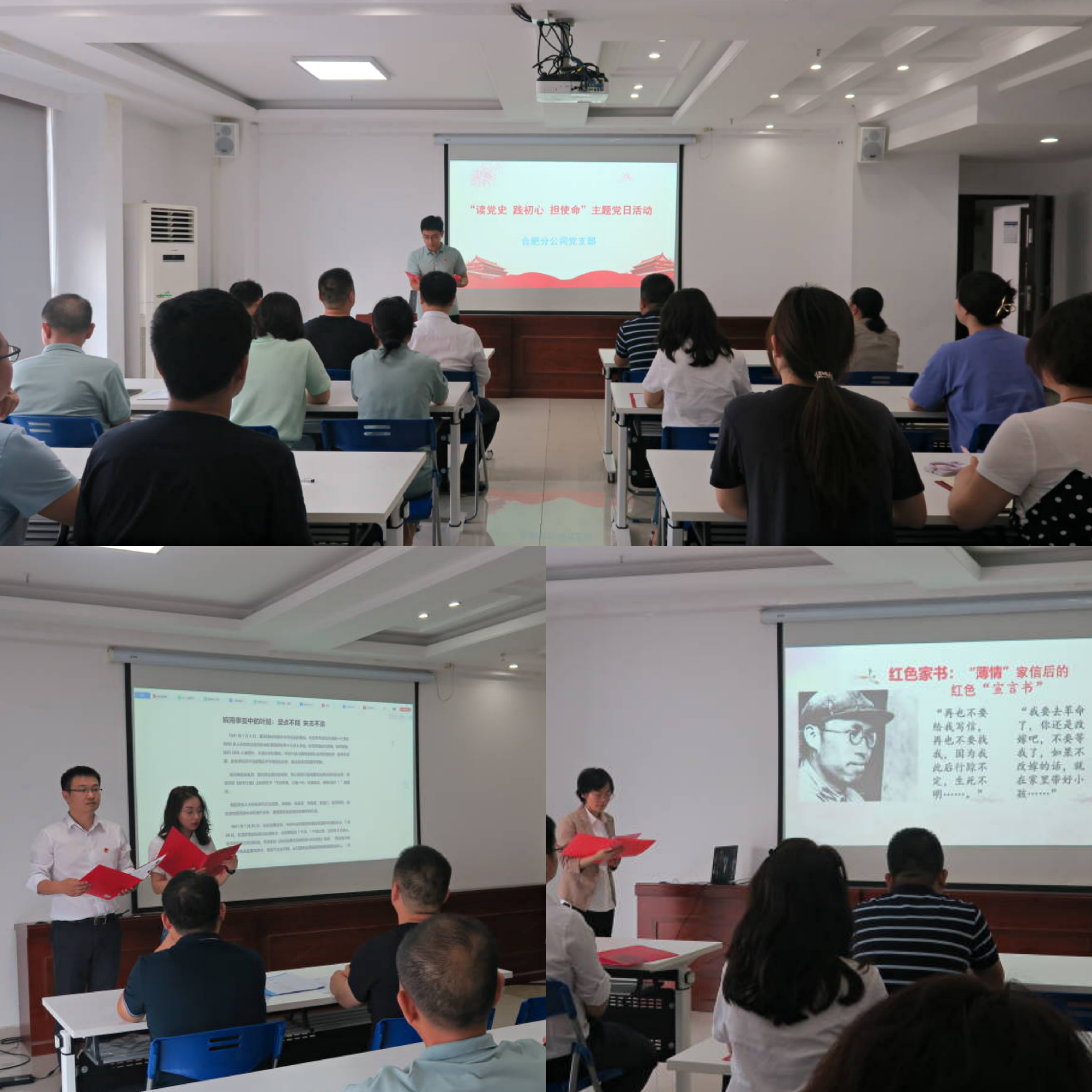 為慶祝中國共產(chǎn)黨成立101周年,進(jìn)一步弘揚黨的光榮傳統,重溫黨的光輝歷程,傳遞職工愛(ài)黨愛(ài)國情懷,“七一”前夕,合肥分公司黨支部組織開(kāi)展了“讀黨史 踐初心 擔使命”誦讀活動(dòng)。圍繞黨史相關(guān)文章、紅色詩(shī)詞、紅色家書(shū)、紅色故事等內容,分公司機關(guān)和項目部廣大黨員職工積極參與。
