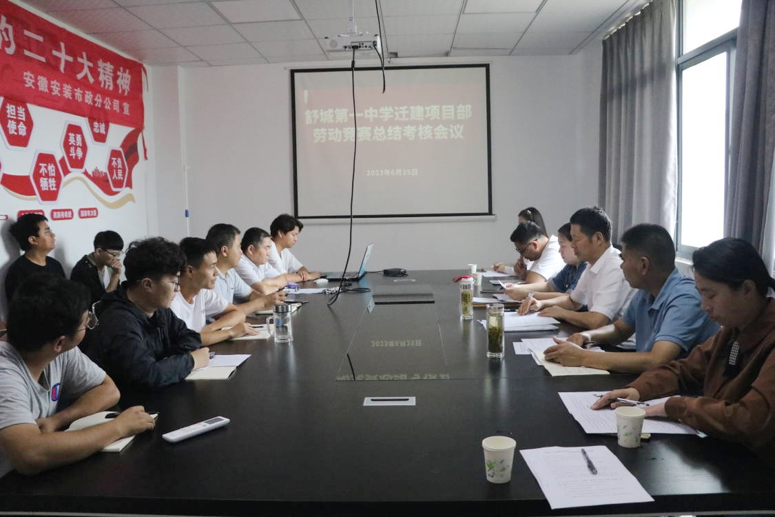 6月25日,市政分公司黨支部書(shū)記胡迎東、副經(jīng)理張漢軍赴舒城一中遷建工程項目部開(kāi)展項目勞動(dòng)競賽考核工作。項目部全體管理人員及勞務(wù)班組代表參加。