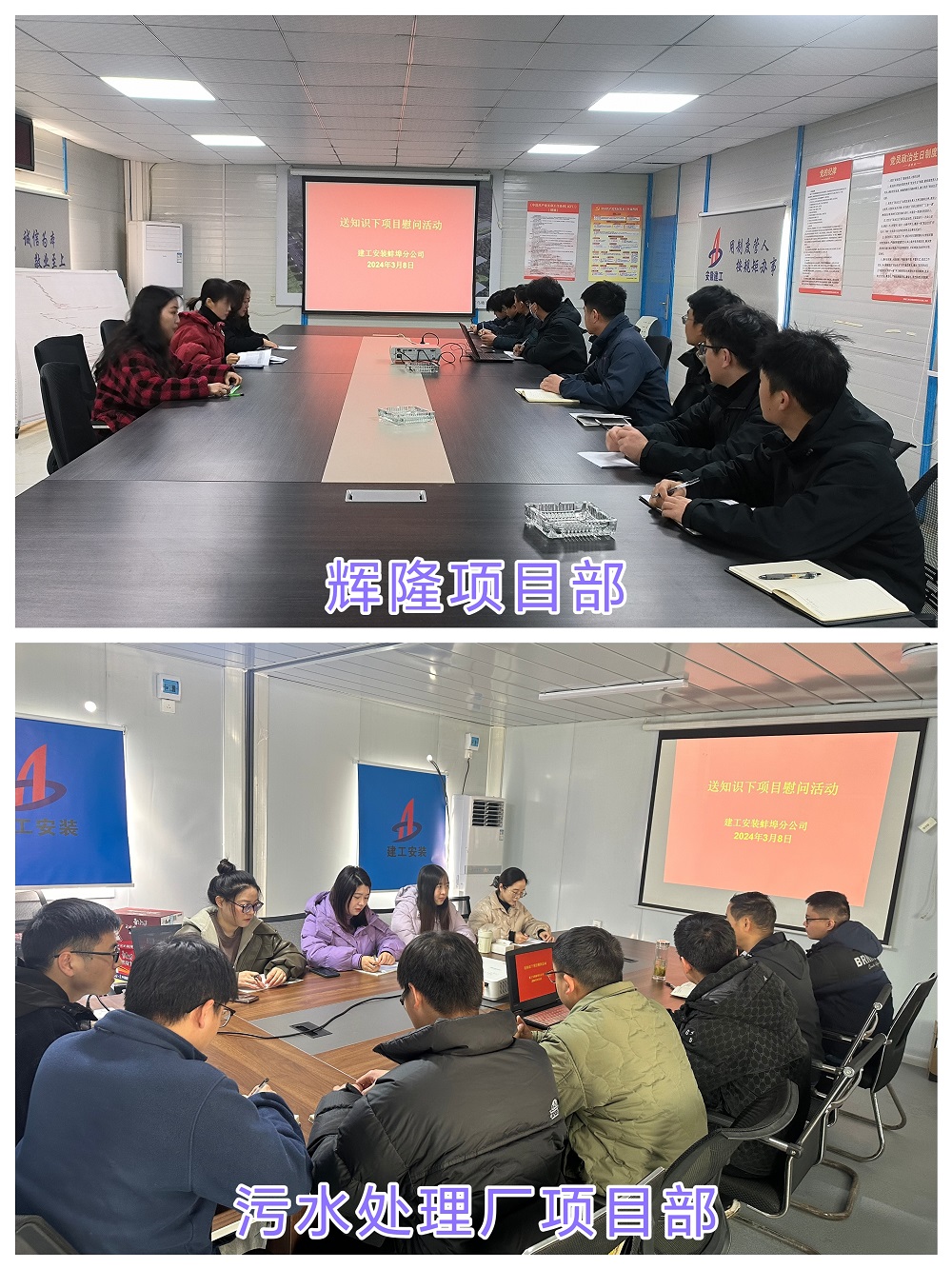 又是一年春暖花開(kāi)時(shí),迎來(lái)了第114個(gè)三八國際婦女節,為慶祝節日,更好地展現安裝女職工的巾幗風(fēng)貌,3月8日,蚌埠分公司女職工分別赴輝隆項目部、污水處理廠(chǎng)項目部開(kāi)展“送知識下項目”活動(dòng)。