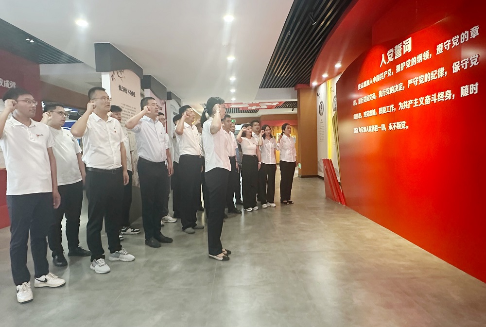 活動(dòng)期間,分公司黨支部書(shū)記、副經(jīng)理程茂麗帶領(lǐng)支部全體黨員集體重溫入黨誓詞。全體黨員面向黨旗舉起右拳,用錚錚誓言宣誓不忘初心使命為黨的事業(yè)奮斗的決心。