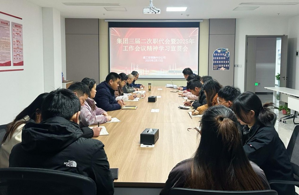 2月13日上午,建工安裝滁州分公司分別在機關(guān)和項目部組織召開(kāi)專(zhuān)題會(huì )議傳達學(xué)習建工控股三屆二次職代會(huì )暨2025年工作會(huì )議精神,分公司領(lǐng)導班子成員、機關(guān)全體員工和新橋智能制造產(chǎn)業(yè)園項目員工參加會(huì )議。